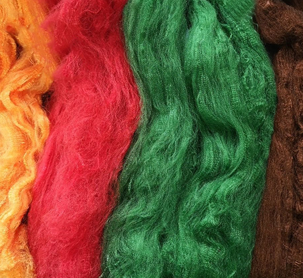 First, fabrics and materials are sorted by color. After sorting, the fabric clips are run through a machine that shreds the fabric clips into yarn and further into raw fibre. It is not uncommon for fibres to break and entangle during shredding. The raw fibre is then spun into yarns for reuse in other products. The quality of recycled fibre will never have quality values equal to the original fibre. Specifically, fibre length and length uniformity will be impacted.